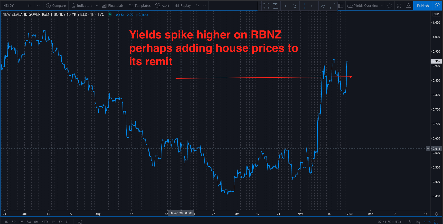 On Tuesday the RBNZ prompted a sharp spike higher in the NZ 10 year bond yields.